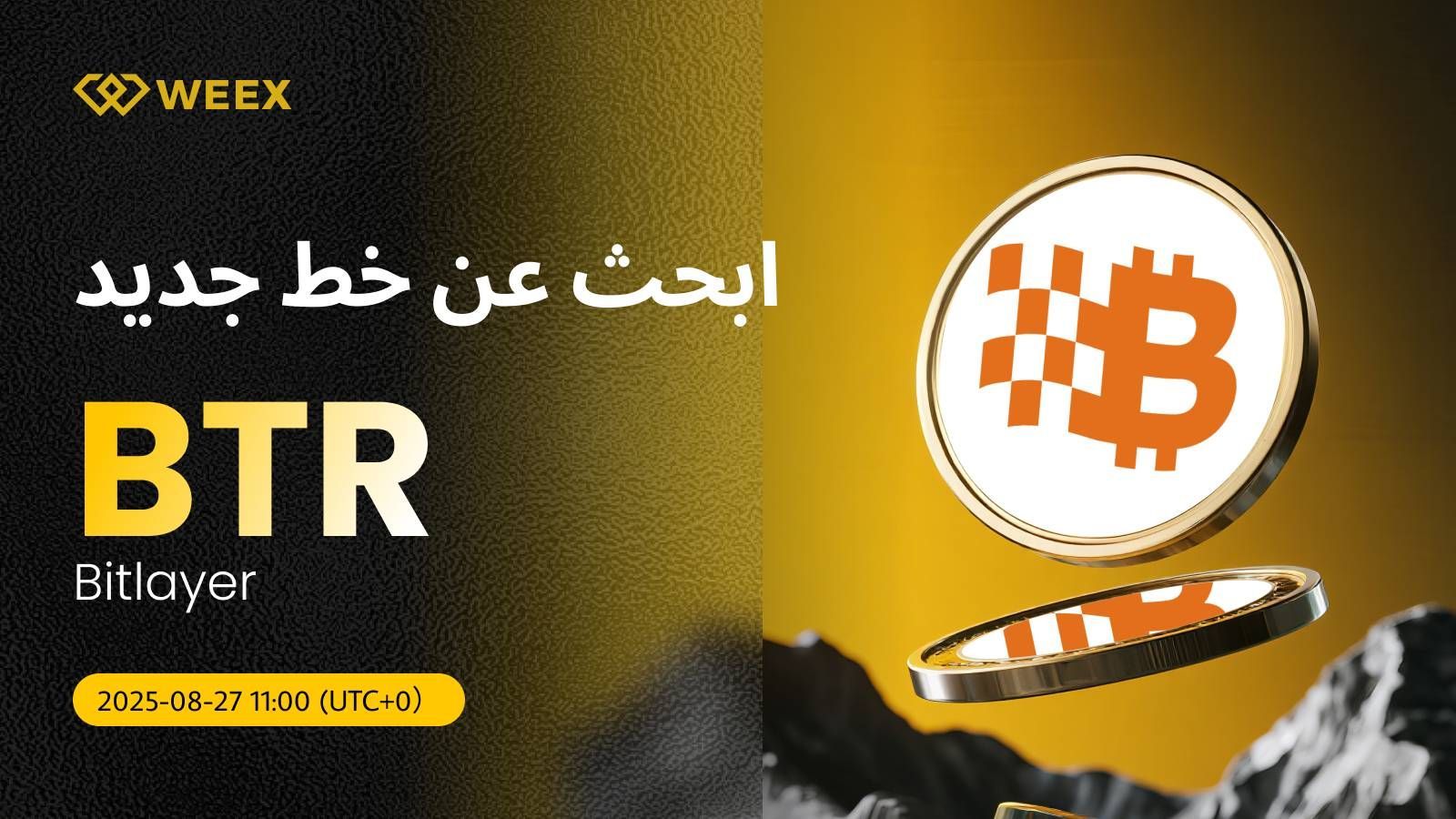 يسعدنا أن نعلن أن Bitlayer (BTR) متاح الآن رسميًا في تداول WEEX الفوري! من الآن فصاعدًا، يمكنك تداول BTR/USDT بسهولة على منصة WEEX. التفاصيل كما يلي: