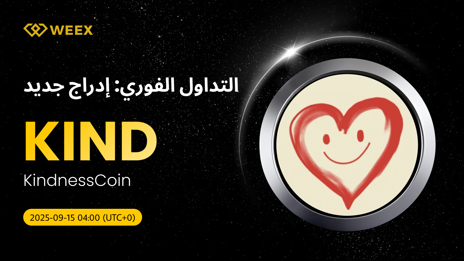يسعدنا أن نعلن أن KindnessCoin (KIND) متاح الآن رسميًا في سوق التداول الفوري على WEEX! من الآن فصاعدًا، يمكنك تداول KIND/USDT بسهولة على منصة WEEX. إليك المزيد من التفاصيل: