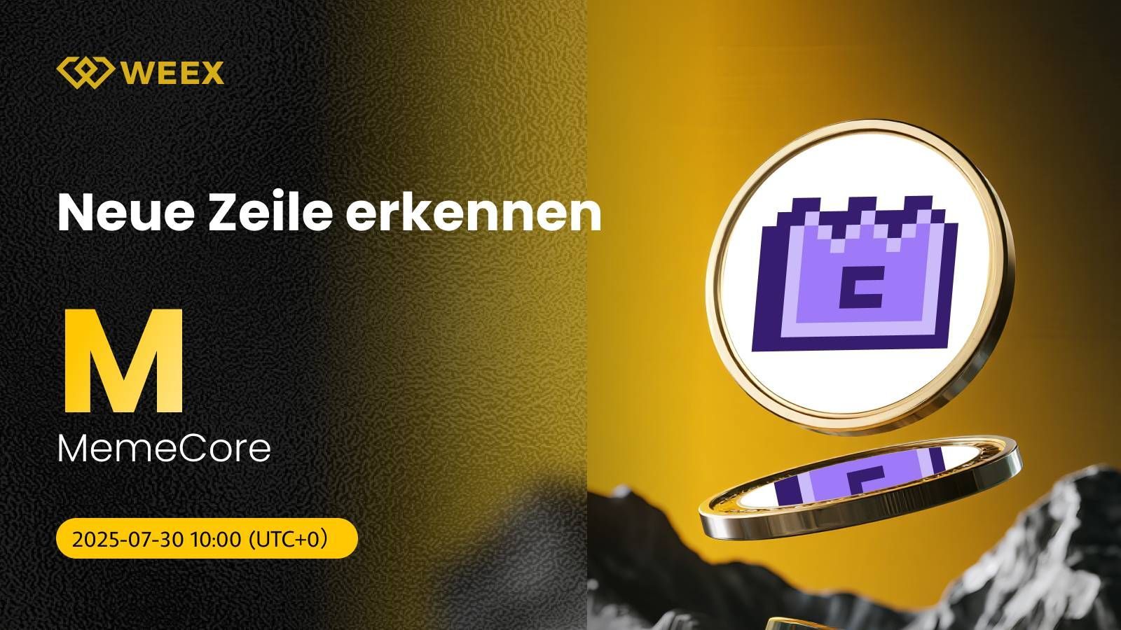Wir freuen uns, Ihnen mitteilen zu können, dass MemeCore (M) nun offiziell im Spot-Handel auf WEEX verfügbar ist! Ab sofort können Sie handeln M/USDT ganz einfach auf der WEEX-Plattform handeln. Die Details lauten wie folgt: