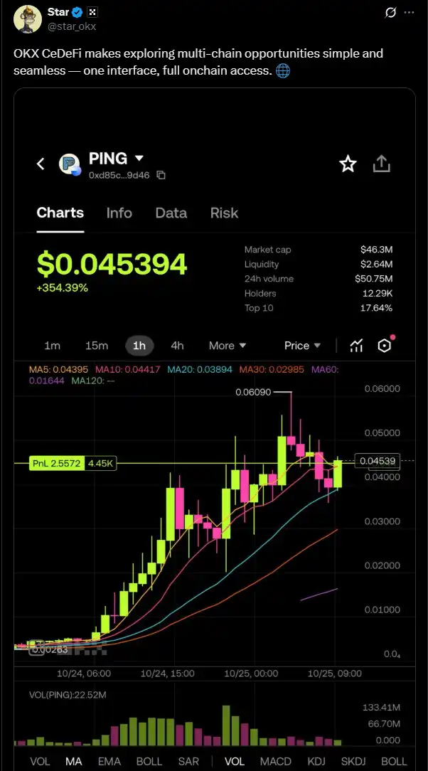 The driving force behind meme coins relies on market sentiment. However, following the tweet from OKX CEO Star with a screenshot of $PING, which lacked further tweets in the short term that could drive market sentiment, a pullback in $PING was also to be expected.