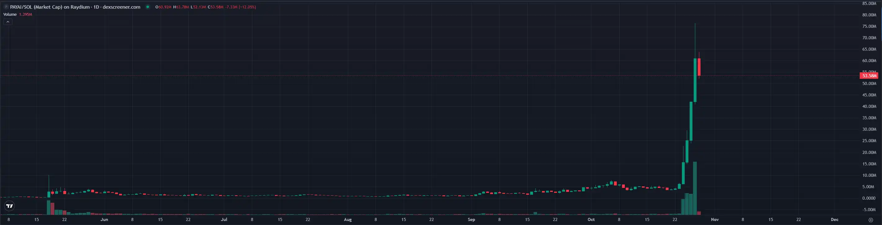 $PAYAI took advantage of this opportunity and became the new leader of the x402 Protocol. Yesterday, $PAYAI's market capitalization briefly exceeded $76 million, marking an increase of approximately 12 times since October 24. Currently, the coin has experienced a pullback, with a market cap of around $53 million.