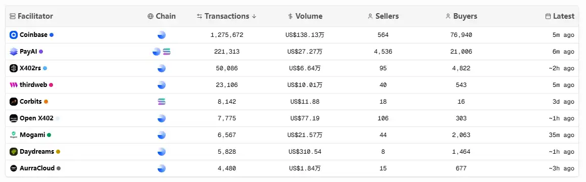 This is mainly due to two factors, with the primary reason being that Payai is currently the second-largest Facilitator in the ecosystem after Coinbase official, providing on-chain validation and settlement services for the x402 Protocol: