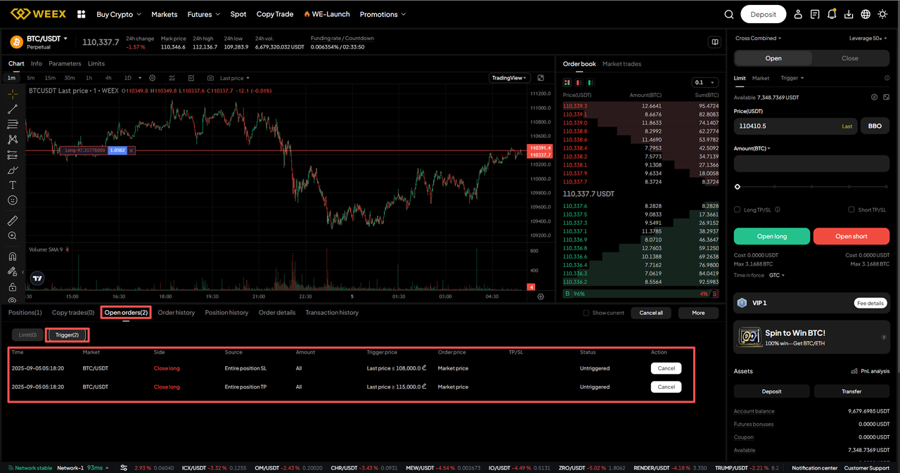 O lucro e stop loss para toda a posição é um novo recurso lançado recentemente pelo WEEX, permitindo que os usuários definam preços de lucro e stop loss para suas ordens de futuros. Quando o preço de mercado atinge o nível de lucro ou stop loss definido pelo usuário, o sistema executará automaticamente uma ordem de mercado para fechar toda a posição.