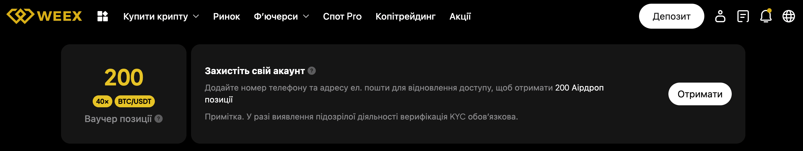 Після отримання ваучер автоматично відкриє для вас реальну ф'ючерсну позицію — не потрібно вручну розміщувати замовлення, що робить процес швидким, безперебійним і зручним для початківців.