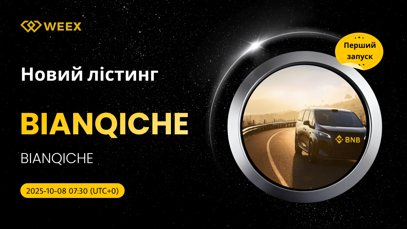 Ми раді повідомити, що BIANQICHE/USDT тепер доступна на WEEX. Подробиці лістинга: