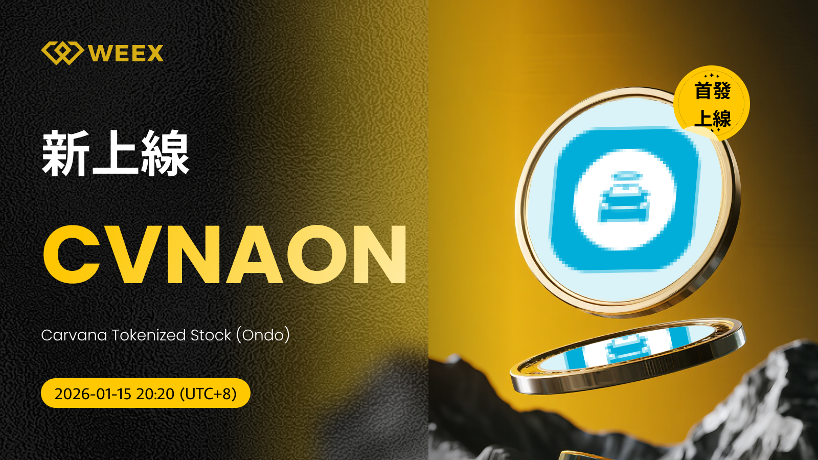 Carvana Tokenized Stock (Ondo) (CVNAON) 現已上線WEEX!